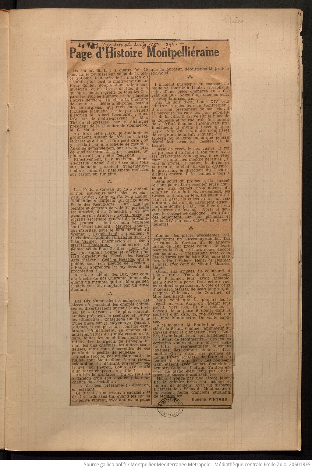 Coupe, La Vie Montpelliéraine, Le Midi Mondain, Pan.... Que du beau linge ! Et quel puissant atelier de litérature potentielle !